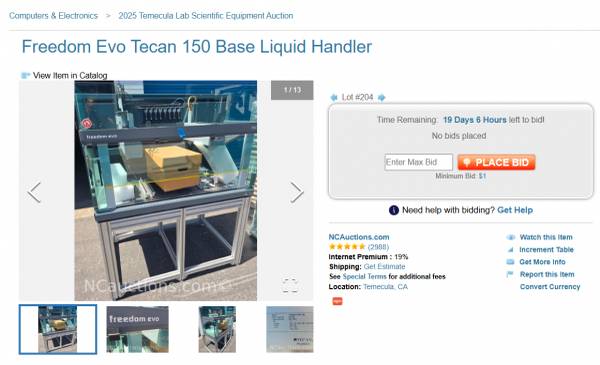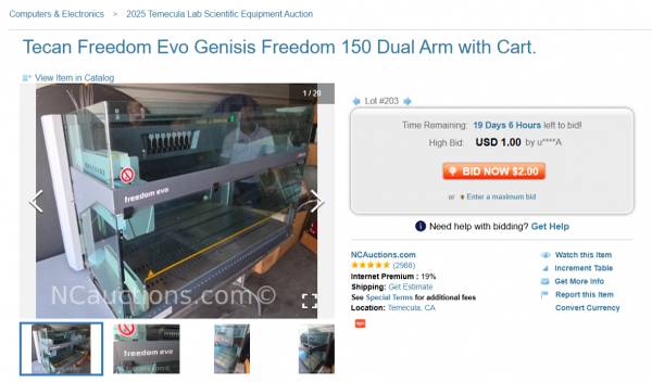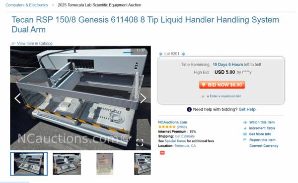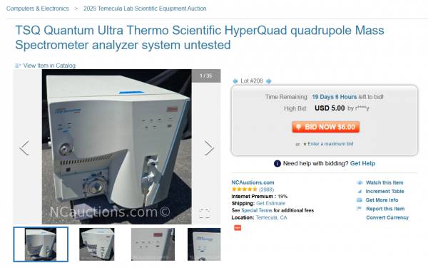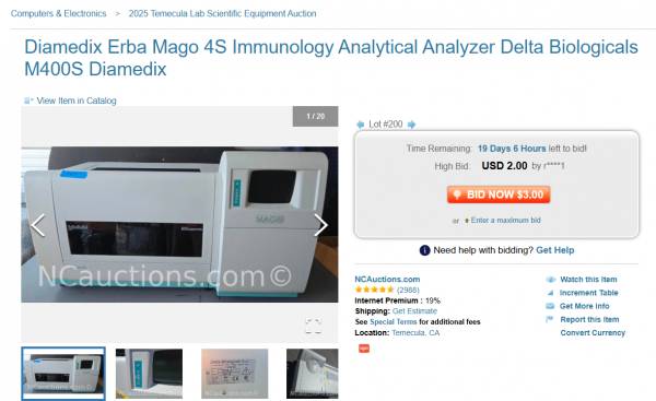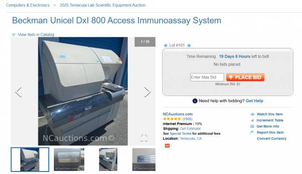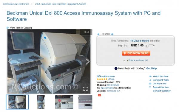 Mass Spectrometers, Unicel DxI 800s, Delta Biologicals, Tecan, Edwards, Vacuum Pumps, Thermo Scientific, Agilent, Diamedix, Packed Lab!! To get upcoming auctions, text ncauctions to 888-841-4382. Email or text with questions (619) 787-4906