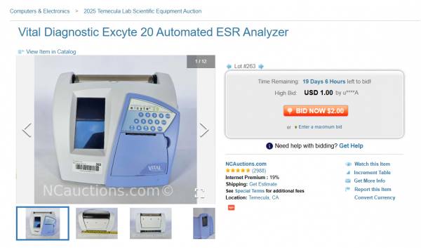 Vital Diagnostic Excyte 20 Automated ESR Analyzer
