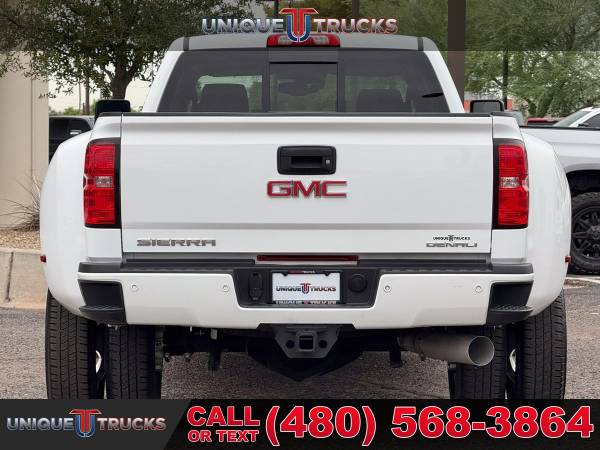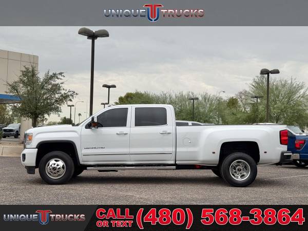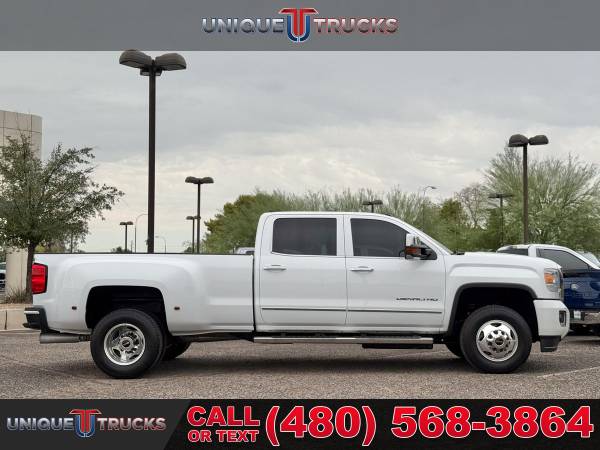Here’s one of the cleanest, nicest, and hardest-to-find one-owner 2015 GMC Sierra 3500HD Denali Dually 4x4 Crew Cab trucks you’ll ever lay eyes on. Finished in Summit White with bold chrome accents and paired with a jet-black leather interior, this head-turning dually is as clean as they come inside and out. It has that sharp, bold look that makes people stop and stare wherever it goes. Every inch of this truck shows care and pride, from the polished exterior to the spotless interior that still feels tight and fresh.Under the hood sits the powerful 6.6-liter Duramax Turbo Diesel V8 engine, known for its proven strength and reliability. Paired perfectly with the smooth-shifting Allison 1000 6-speed automatic transmission, this setup delivers both strong towing power and refined daily driving comfort. Whether it’s pulling a heavy trailer or cruising down the highway, this Sierra Denali Dually does it all with ease. The truck’s 4x4 system gives it the traction and confidence needed to handle any road or weather, while the heavy-duty suspension keeps it stable and smooth even when loaded up.Inside, the cabin is all Denali luxury — quiet, clean, and loaded with comfort features. The black leather-appointed seats are heated and cooled for year-round comfort, and the front bucket seats offer full power adjustment with memory settings. The customizable 8-inch driver display, dual-zone climate control, heated steering wheel, and Bose premium sound system all come together to create an interior that feels high-end and comfortable on long drives. You’ll also enjoy features like OnStar with built-in 4G LTE Wi-Fi, Bluetooth for phone and music, remote start, and a universal home remote for added convenience.This truck is built for people who love real comfort and capability in one package. It includes features like power-adjustable pedals, power windows with express functions, and a reconfigurable center console designed for everyday use. The 110-volt outlet adds extra flexibility, and the large touchscreen with navigation and SiriusXM Radio keeps you connected wherever you go. From the moment you start it up, everything feels refined, easy to use, and built to last.On the outside, the Denali style shines through. Chrome door handles, body-colored bumpers, a bold grille, and large chrome camper mirrors make this truck stand out even more. It’s equipped with factory chrome tubular assist steps, LED cargo box lighting, and a spray-on bed liner with an embossed Denali logo — perfect for anyone who actually uses their truck but wants it to stay sharp. The EZ-Lift and Lower locking tailgate makes loading and unloading simple, while the CornerStep rear bumper adds everyday convenience.Every detail has been thought through, right down to the polished 17-inch forged aluminum wheels and the all-terrain tires that give it both looks and grip. The heavy-duty frame, DuraLife brake rotors, and fully-boxed front section show how much durability GMC put into this Denali. With features like an integrated trailer brake controller, trailering wiring provisions for fifth-wheel or gooseneck towing, and the 4.10 rear axle ratio, this dually is ready for serious work or play.At Unique Trucks, the price you see is the price you pay — no hidden markups, no add-ons, and no surprise addendums. What’s listed is exactly what you’ll pay, plain and simple. We believe buying a truck should be easy, honest, and pressure-free. Every truck we sell, including this Denali Dually, is fully serviced and ready to go.And for those who prefer to shop from home, our No-Obligation Delivery Program lets you have this truck delivered right to your doorstep. You can make your best deal over the phone, have the vehicle brought to you for a test drive, and if you don’t love it, you don’t buy it — no pressure, no catch. It’s truck shopping made easy and convenient.We love trade-ins, and we’re always looking for clean trucks and lifted trucks to add to our inventory. Whether you’re upgrading, downsizing, or just ready for something new, we’ll make you a fair offer and make the process simple from start to finish.Come see this one-owner 2015 GMC Sierra 3500HD Denali Dually 4x4 in person and experience how clean and well-kept it really is. At Unique Trucks, we take pride in offering some of the nicest trucks and lifted trucks around, all ready for their next owner. This Denali is not just another heavy-duty — it’s a rare, head-turning, powerful truck that’s ready for work, travel, and everything in between. ______________________________ 2015* 2016* 2017* GMC* SIERRA* 3500HD* 3500* DENALI* CREW* SIERRA* DUALLY* DUAL REAR WHEEL* 4X4* DIESEL TRUCKS* DURAMAX* DIESEL* 4X4* FOUR WHEEL DRIVE* 4WD* DIESEL TRUCKS* LIFTED TRUCKS* GMC TRUCKS* DIESEL* DURAMAX* ALLISON TRANSMISSION* LIFTED TRUCKS* LIFTED GMC* TOWING TRUCKS* SIERRA* LOW MILES* LOW MILEAGE* RELIABLE* ONLY*