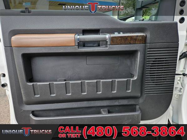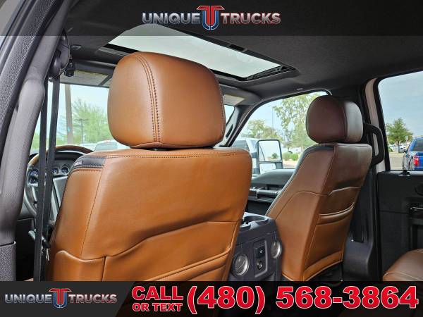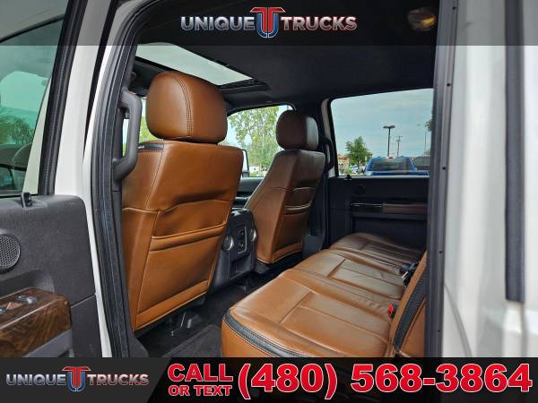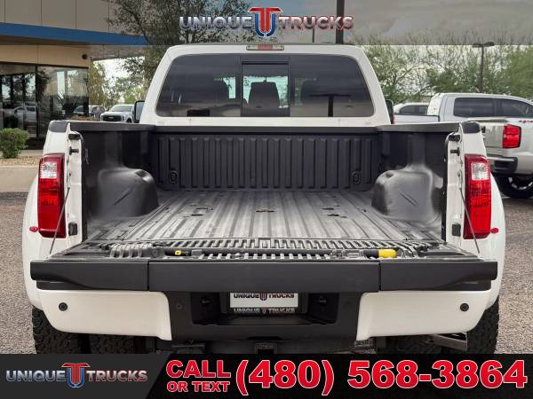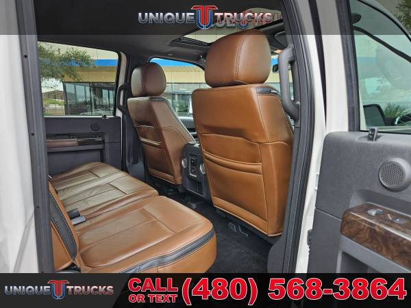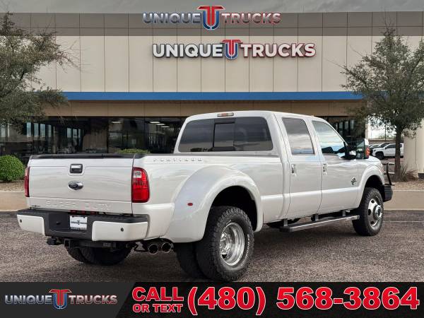 This 2016 Ford F-350 Super Duty Lariat Platinum Edition Crew Cab 4x4 Dually is one of the cleanest, nicest lifted trucks you’ll find anywhere. With its White Platinum Tri-Coat exterior shining bright and its exclusive Pecan leather interior, this truck stands out everywhere it goes. It’s a guaranteed head-turner and one that’s built to impress from every angle. This hard-to-find F-350 Platinum has been fully serviced and is ready for its next owner.Under the hood sits the powerful 6.7-liter Power Stroke V8 turbocharged diesel engine paired with a smooth 6-speed automatic transmission. This setup delivers strength, dependability, and performance for any job. Whether you’re towing a heavy load or hauling a trailer, this truck handles it with ease. It’s made to work hard and look good doing it.The exterior of this F-350 features a custom Ranch Hand front bumper that gives it a bold, rugged look while offering extra protection. The dual rear wheels and 5th wheel prep package make it perfect for towing campers, boats, or heavy trailers. This lifted dually truck sits just right, giving it that strong stance that turns heads on the road or job site.Inside, the Platinum Edition shines with exclusive Pecan leather seats that give a warm, upscale feel. The seats are heated and cooled up front, with heated rear seats to keep everyone comfortable no matter the weather. The dual-zone automatic climate control system adds even more comfort for both driver and passengers. The power-sliding moonroof opens up the cabin and adds that extra touch of luxury.The cabin also features an 8.4-inch full-color touchscreen infotainment system with built-in navigation, Bluetooth capabilities, and easy-to-use controls. You’ll find all your favorite media, apps, and maps right at your fingertips. The sound system fills the cabin with clear, rich audio, making every drive more enjoyable.Convenience features include power windows, power door locks, power-folding mirrors, and memory seating settings for multiple drivers. The truck also has a camper package, adding even more towing and hauling versatility. Every part of this truck, from its polished details to its heavy-duty build, shows quality and care.The White Platinum Tri-Coat exterior paint looks great in any light, paired perfectly with the chrome trim and accents throughout. The bed is ready for work, whether it’s hauling gear or pulling a large trailer. It’s the kind of lifted truck that not only looks great but is built to handle anything you throw at it.At Unique Trucks, the price you see is the price you pay — no hidden markups, no addendums, and no surprise fees. We believe in keeping things simple and honest, giving you a clear and fair deal on every truck we sell. Every lifted truck we offer, including this beautiful F-350 Platinum Edition, is fully serviced and ready to hit the road.We also offer our no-obligation delivery service, where the truck can be delivered right to your doorstep. You can test drive this lifted truck from the comfort of your own home. Make your best deal over the phone, and if you don’t like it, you don’t buy it — it’s that easy.We love trade-ins and make it simple to upgrade or change into something new. We always encourage you to come in, see our full selection of trucks and lifted trucks in person, and experience what makes Unique Trucks stand out. This 2016 Ford F-350 Platinum Dually is ready to impress, ready to work, and ready for its next adventure. ___________________________________ 2016*2015* 2014* FORD* F-350* F350* F 350* SUPERDUTY* PLATINUM* CREW* CREW CAB* DIESEL TRUCKS* FORD TRUCKS* DIESEL* DUALLY* DUAL REAR WHEEL* 4X4* FOUR WHEEL DRIVE* 4WD* POWERSTROKE* DIESEL* TOWING* TOW TRUCKS* FORD TRUCKS* DIESEL* LOW MILES* LOW MILEAGE* RELIABLE* ONLY*