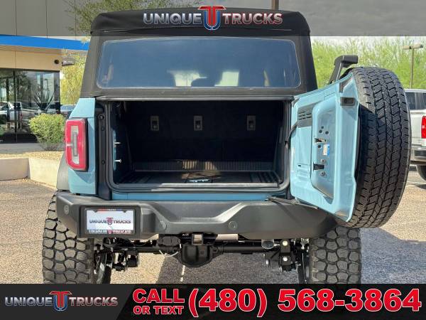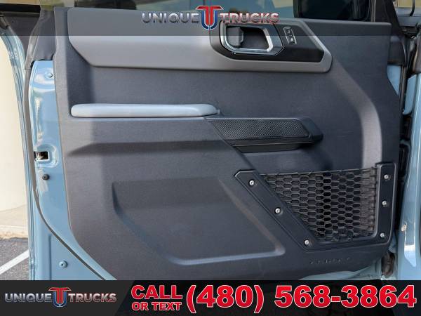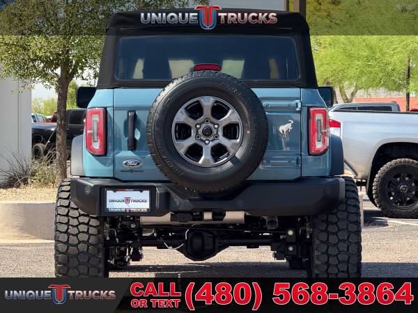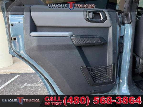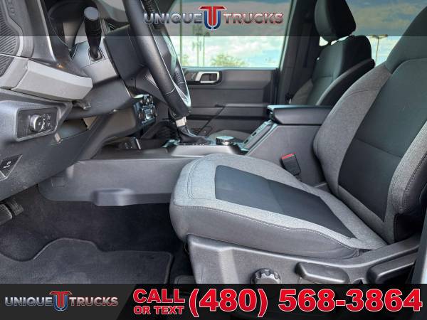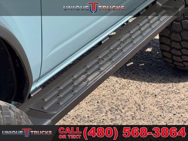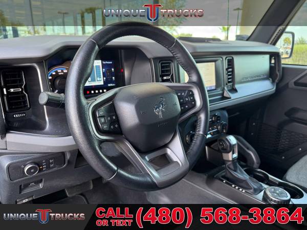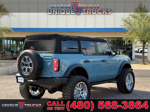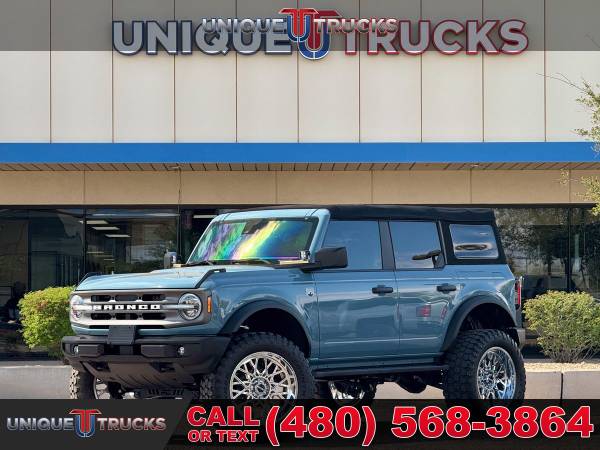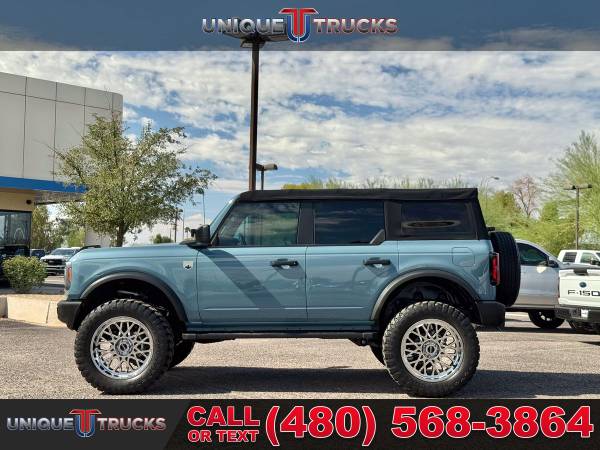 This lifted 2022 Ford Bronco Big Bend SUV is a head-turner from every angle with its hard-to-find Area 51 exterior color and its clean gray and black cloth interior. It’s the perfect mix of style, comfort, and capability, making it one of the nicest lifted trucks and SUVs you’ll find anywhere. The stance, the shine, and the overall look make it clear that this Bronco means business. With its lifted setup, custom chrome wheels, and aggressive Open Country MT tires, this Bronco grabs attention on the street or the trail.Under the hood, this lifted Bronco packs the powerful 2.7-liter EcoBoost twin-turbocharged V6 engine that delivers smooth and responsive power every time you hit the gas. It’s paired with a 10-speed automatic transmission that shifts seamlessly and keeps you in control, whether you’re cruising down the highway or climbing over rough terrain. The lifted Pro Comp suspension gives it the perfect height and ride feel, while the Pro Comp fog lights add both style and better visibility. This is one of those lifted trucks that feels just as good to drive as it looks.The exterior of this Bronco is loaded with features made for real adventure. You’ll find fender tie-down hooks, a gray and white Bronco grille, front and rear tow hooks, auto LED headlamps with high-beam assist, and heated power mirrors with manual fold. The easy fuel capless filler system makes stops at the pump quick and clean. The tinted glass gives it a sharp look, and the overall design is built to handle whatever the day brings. Every detail, from the grille to the wheels, shows how much care went into making this Bronco ready to perform.Step inside and you’ll find a cabin that’s both tough and comfortable. The cloth bucket front seats give you plenty of support, and the 6-way manual driver and passenger seat adjustments let you find the perfect position. The 60/40 split rear seat folds down for extra cargo room, while carpet flooring keeps things clean and easy to maintain. You’ll also find a locking glove box, tilt and telescoping steering column, leather-wrapped steering wheel and gear knob, and plenty of USB ports to keep all your devices powered.The technology inside makes every drive more enjoyable. The 8-inch touchscreen sits front and center with the SYNC 4 system and enhanced voice recognition. You’ll have access to SiriusXM with 360L, navigation, and FordPass Connect with Wi-Fi hotspot capability. The 8-inch digital display cluster keeps you informed while you drive, and push-button start makes getting on the road quick and simple. This Bronco comes equipped with terrain management and G.O.A.T. modes, giving you full control for whatever surface you’re tackling.Comfort comes standard in this Big Bend model with the Mid Package. You’ll get dual-zone electronic climate control, heated front seats, remote start, and power outlets placed conveniently throughout the cabin. The sound system with six speakers delivers crisp audio, and the interior lighting adds the right touch of warmth for evening drives. This lifted Bronco is built for both rugged use and daily comfort, giving you the best of both worlds in one clean package.Safety and security are key parts of this SUV’s design. It comes with AdvanceTrac with roll stability control, multiple airbags for all rows, a perimeter alarm, child safety locks, and a tire pressure monitoring system. The Ford Co-Pilot360 system brings driver-assist features like Pre-Collision Assist with Automatic Emergency Braking and a rearview camera that makes parking and reversing easy. It’s built to keep you and your passengers safe wherever you go.This lifted Bronco is also equipped with optional upgrades that make it even more capable. It includes auxiliary switches, LED signature lighting, a towing package, connected navigation, and a soft cloth top with prep kit for easy open-air driving. With its 3.73 rear axle ratio and open differentials, this lifted SUV is ready for both towing and trail use. Whether it’s adventure or daily driving, this Bronco has you covered.At Unique Trucks, the price you see is the price you pay—no hidden markups, no add-ons, and no confusing extras. We believe in simple, honest pricing, so you always know exactly what you’re getting. Every one of our lifted trucks and SUVs is carefully inspected, fully serviced, and ready for its next owner. You won’t find surprise fees or fine print—just real value and real quality.And when it comes to convenience, no one makes it easier than Unique Trucks. We offer our no-obligation delivery service, which means we can deliver this lifted Bronco right to your doorstep. Test drive it from the comfort of your own home, make your best deal over the phone, and if you don’t like it, you don’t buy it. It’s that easy. We also love trade-ins and welcome you to visit our dealership and check out our full lineup of trucks and lifted trucks in person. This lifted 2022 Ford Bronco Big Bend is ready to turn heads, ready for the road, and ready for its next owner.