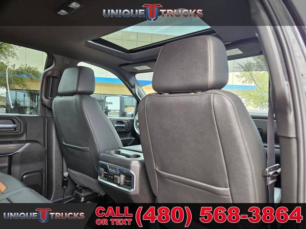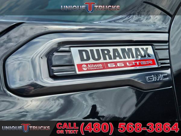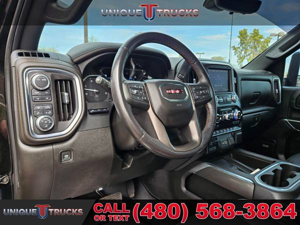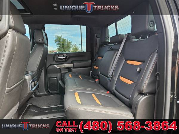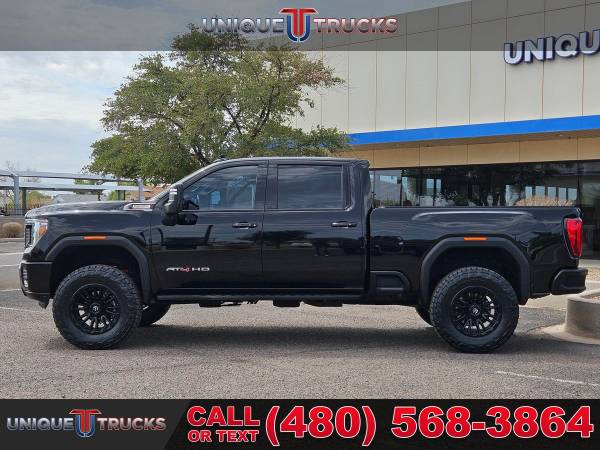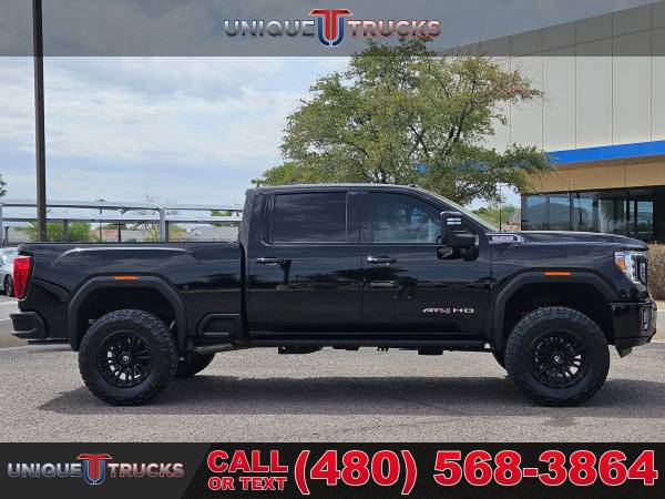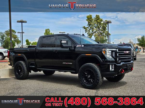 This lifted 2022 GMC Sierra 2500HD AT4 Edition Crew Cab is as clean and sharp as they come, finished in Onyx Black with all the matching color key accents that give it a bold look on the road. The AT4 styling package adds red recovery hooks, black trim, and unique details that make this truck stand out in any setting. With its lifted stance and upgrades, this truck is a guaranteed head turner wherever it goes.Step inside and you’re greeted with a premium interior that combines Jet Black leather with Kalahari accents. The heated and ventilated front bucket seats, memory settings, dual zone climate control, and heated steering wheel give comfort for long drives. The rear seats also fold to provide extra storage and are heated for passengers. From the leather-wrapped wheel to the premium floor liners, every detail shows quality and care.Powering this truck is the proven 6.6-liter Duramax diesel V8 engine, paired with the smooth-shifting Allison 10-speed automatic transmission. This setup gives you both strength and reliability, with plenty of towing and hauling power. Whether you’re pulling heavy loads or just driving around town, this truck delivers the kind of performance you can depend on every day.This Sierra comes with a brand new professionally installed 3-inch Rough Country red upper control arm kit, complete with M1 monotube shocks for better ride and control. The truck sits on Fuel Rebel 20x9 wheels wrapped in massive 37x12.50R20LT Nitto Recon Grappler tires, giving it the perfect lifted truck stance. With this setup, it’s ready for both on-road comfort and off-road adventure.The AT4 package adds off-road features like skid plates, hill start assist, auto locking rear differential, and the X31 off-road suspension. Add in the trailer brake controller, tow-haul mode, and ProGrade Trailering System, and this truck is set up to haul or tow with ease. With a GVWR of 11,350 lbs and a rear axle ratio of 3.42, it has the strength to handle heavy trailers, boats, or work equipment without breaking a sweat.For technology, this truck offers an 8-inch HD touchscreen with navigation, wireless Apple CarPlay and Android Auto, Bluetooth streaming, and voice recognition. It also includes a Bose premium sound system, wireless charging, HD surround vision with trailer camera provisions, and a bed view camera. From work to weekend, this lifted truck blends function with convenience.Safety is a major focus, and this truck comes packed with features like lane change alert with blind zone alert, rear cross traffic alert, forward collision alert, lane departure warning, automatic emergency braking, IntelliBeam auto high beams, following distance indicator, and a safety alert seat. These systems give peace of mind every time you get behind the wheel.The exterior is set off with LED reflector headlamps, LED fog lamps, LED cargo lights, and roof marker lamps, along with the GMC MultiPro tailgate and spray-on bedliner with the AT4 logo. Power fold and extend trailer mirrors make towing simple, while side steps and rear bumper corner steps add everyday convenience. With its lifted look and Onyx Black paint, this truck has presence everywhere it goes.This Sierra 2500HD AT4 is fully serviced and ready for its next owner. It’s the cleanest, nicest lifted truck you’ll find, with the right upgrades and all the features you could want. Unique Trucks also makes it easy with our no obligation delivery service — we’ll bring the truck right to your doorstep for a test drive at home. Make your best deal over the phone, and if you don’t like it, you don’t buy it.We love trade-ins and encourage you to stop by and check out our selection of lifted trucks and other quality trucks in person. If you’re looking for power, style, comfort, and capability, this 2022 GMC Sierra 2500HD AT4 Edition delivers it all in one clean package. It’s lifted, loaded, and ready to go.