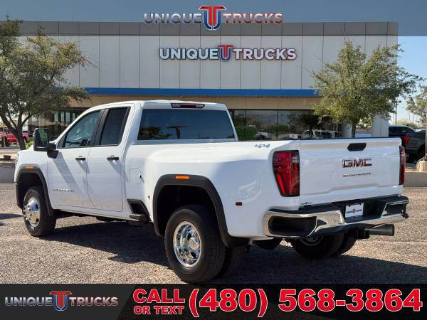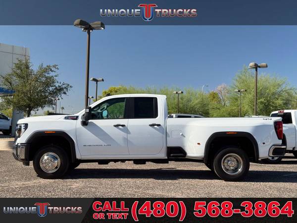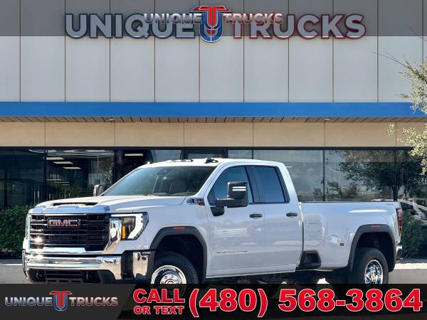 This 2025 GMC Sierra 3500HD Dual Rear Wheel 4x4 Extended Cab is one of the cleanest and nicest heavy-duty trucks you’ll find anywhere. Finished in Summit White with a jet-black cloth interior, this truck stands out with its powerful stance and chrome wheels that shine from every angle. It’s a guaranteed head-turner that brings together power, function, and clean style. This dually is built for work or play and ready to handle any job you throw its way.Under the hood, you’ll find the Duramax 6.6-liter turbo diesel V8 engine paired with the smooth-shifting Allison 10-speed automatic transmission. Together, they deliver the power and dependability that make this Sierra a true workhorse. Whether you’re towing heavy loads, hauling equipment, or cruising the open highway, this setup gives you the strength and control you need to get it done. The dual rear wheels provide added stability for towing and hauling, making it ready for serious work.This 2025 Sierra 3500 comes equipped with a Gooseneck and 5th Wheel Prep Package, complete with stamped bed holes and a 7-pin trailer harness. It also includes a spray-on bedliner to protect your bed from wear and tear, plus all-terrain tires that help this truck stay planted no matter what’s under it. The rear axle with a 3.42 ratio and heavy-duty suspension make it perfect for pulling large trailers, boats, or campers with confidence and ease. Safety and security are well covered with advanced features that include forward collision alert, lane departure warning, following distance indicator, and front pedestrian braking. It also has automatic emergency braking, Intellibeam headlamps, teen driver mode, and a rear vision camera. These systems work together to keep you alert, aware, and protected while towing or driving through busy roads.Performance and handling are backed by a strong mechanical setup that includes a 220-amp alternator, a heavy-duty air cleaner, an auto-locking rear differential, and independent front suspension. With StabiliTrak, trailer sway control, and hill start assist, this truck stays stable even under heavy loads. The 2-speed electronic transfer case gives you control for both on-road and off-road conditions, while the brake pad monitoring system keeps you up to date on your truck’s readiness.Inside the Sierra, you’ll find a practical and comfortable cabin made for long drives or long days at work. The front 40/20/40 split-bench seat comes with a large armrest and storage space, while the 60/40 rear folding bench seat makes room for extra gear. Rubberized vinyl flooring makes cleanup simple, and rear HVAC vents keep everyone comfortable. Power windows, door locks, and air conditioning round out the convenience features that make this cabin both functional and comfortable. The truck also includes the GMC Infotainment System with a 7-inch color touchscreen display. It features Bluetooth audio streaming, wireless Apple CarPlay, and Android Auto compatibility. You’ll also get OnStar services with available Wi-Fi, rear seat reminder, and multiple USB ports to keep your devices powered. It’s the kind of setup that keeps you connected and in control wherever the job or road takes you.On the outside, this Sierra stands tall with chrome front and rear bumpers, roof marker lamps, and animated LED projector headlamps. It also has corner steps built into the rear bumper for easy bed access, front recovery hooks for added peace of mind, and tinted glass for a sharp, finished look. The Convenience Package adds even more, including LED cargo bed lighting, EZ lift power lock and release tailgate, trailer mirrors with power adjustment, and a rear-window defogger.At Unique Trucks, the price you see is the price you pay — no hidden markups, no addendums, and no surprise add-ons. Every truck we sell is fully serviced, inspected, and ready for its next owner. This 2025 GMC Sierra 3500 Dual Rear Wheel 4x4 is no exception — it’s clean, powerful, and ready to get to work or hit the road today. We also make it easy with our no-obligation delivery service. Your next truck can be delivered right to your doorstep with no commitment. Take a test drive from the comfort of your own home, make your best deal over the phone, and if you don’t like it, you don’t buy it. We love trade-ins and offer fair value for every vehicle. Come see us and check out our lineup of trucks and lifted trucks — you won’t find a smoother, more straightforward truck buying experience anywhere else. _____________________________ 2025* GMC* SIERRA* 3500HD* PRO* DOUBLECAB* EXTENDED CAB* DUALLY* DRW* DUAL REAR WHEEL* SIERRA* 3500HD* DIESEL TRUCKS* GMC TRUCKS* SIERRA* 3500HD* DIESEL* DUALLY* PRO* 4X4* FOUR WHEEL DRIVE* 4WD* DIESEL TRUCKS* LIFTED TRUCKS* LOW MILES* LOW MILEAGE* RELIABLE* ONLY*