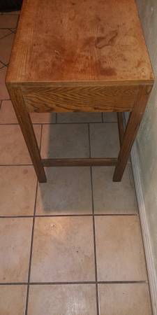Wood desk with two drawers. Light brown color. Shows a bit a fading and spots. 48x28x18 (Length, Width, Height). Weight around 40lbs. $25 firm. No delivery.