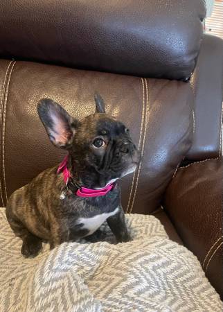 10 weeks old french bulldog females with 2 shots, short body’s parents on site 3 girls create train. $600 price negotiable looking for forever homes. info