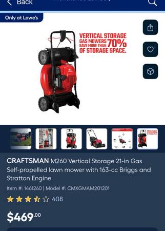 Craftsman lawnmower for sale. I am selling for my mom, she switched to an electric mower and no longer needs a gas powered one. Does not start, but it did run when it was parked over a year ago. Anyone with basic mechanic skills should be able to get it running again. $40