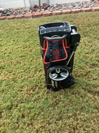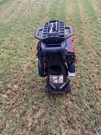 Functions as a push cart or folds up to load on an electric golf cart. Sells for $445 new.